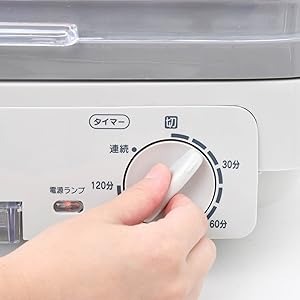 運転音約32dBの静音設計で、設置場所とリビングや寝室が近い場合、赤ちゃんがいる家庭など騒音が気になる方も安心です。使いやすいダイヤル式の60分タイマーも搭載しています。