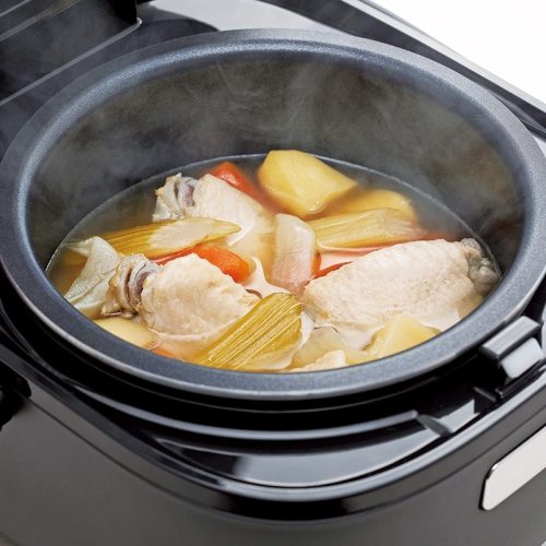 コンパクトな設計で一人暮らしや少人数家庭にぴったり。マットホワイトとマットブラックの2色展開で、キッチンのインテリアに合わせて選べます。炊飯以外の調理にも挑戦したい方におすすめの多機能炊飯器です。