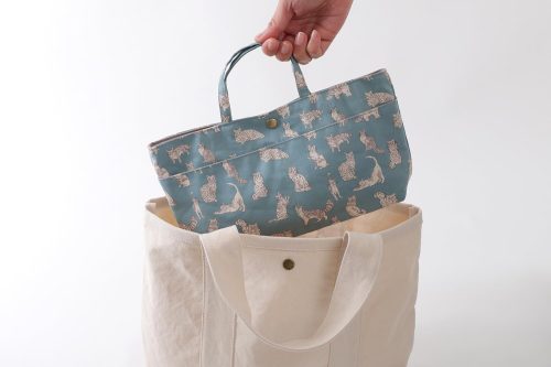 大きめバッグの中を整頓したいときは、外側にマチ付きポケットを備えたラージサイドを使うと便利。マチなしポケットが表にくるスモールサイドに変えれば、小さめバッグにもすっぽり収まります。
