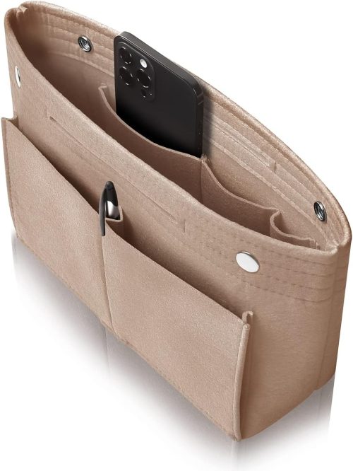 あたたかみのあるフェルト生地を採用した、おすすめのレディース向けバッグインバッグ。型崩れしにくく、メインバッグの形をきれいに保つ効果も期待できます。付属の底板を入れれば、安定感をアップさせることが可能です。