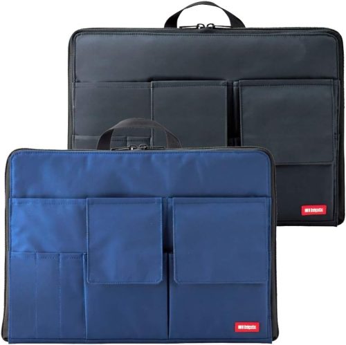 多数のポケットと仕切りにより、バッグの中身をきれいに整理でき、取り出しやすい構造につながります。A4やB5対応や、ミニサイズなど、さまざまなサイズ展開があり、自分のバッグに合わせて選べることが特徴です。また、メッシュ素材で中身が見やすいタイプや自立型、薄型コンパクト型など、用途に応じた選択肢が豊富にあります。