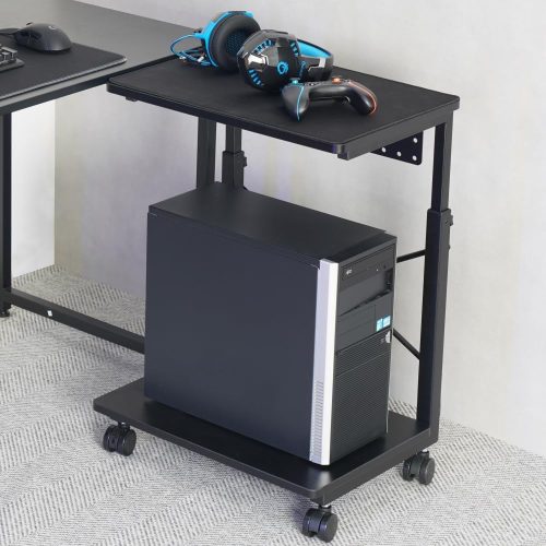 フルタワーパソコンを収納できるPCワゴンです。無段階で高さを調整できる昇降機能付き。天板は49.5cmまで下げられるため、ローデスクを使用している方にもおすすめです。
