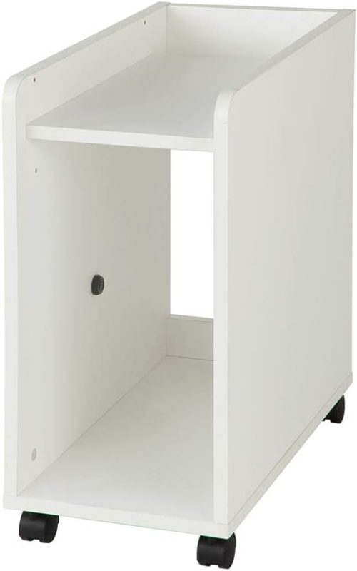 デスク周りのスペースを広く使いたい方におすすめのPCワゴンです。約幅51×奥行30×高さ58cmとスリムかつ省スペース設計なので、机の下などにもスッキリと設置できます。片側に幅広の背板が配置されており、背面へのパソコンの倒れ込みが防げるのもポイントです。