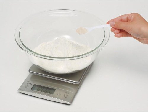 0.1g単位で測定できる高精度なキッチンスケール。イーストやベーキングパウダーなどの材料もより正確に計量できます。最大3kgまで対応するため、パン生地や大量の材料も測りやすいのがメリットです。