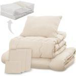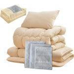 3〜5点の布団セットの多くは、枕・掛け布団・敷き布団などの必要最低限のアイテムで構成されています。単品ごとよりもコスパよく購入しやすいのが魅力。4〜5点の布団セットには収納ケースも付属していることが多いので、使わないときはコンパクトにまとめて、押し入れなどに省スペースで収納可能です。