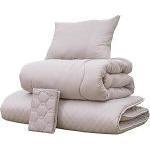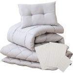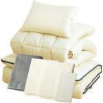 | 詰め物 | 掛け布団:ポリエステル100%(東レFTわた)/ 敷き布団:ポリエステル100%、ウレタン | 掛け布団:フランス産ホワイトダックダウン90%、フェザー10% / 敷き布団:(上層)ウール50%、ポリエステル50% 、(中層)固綿ポリエステル100%、(下層)ウール50%、ポリエステル50% | 掛け布団:ポリエステル100%(アクフィットECO)/ 敷き布団:固綿ポリエステル、ポリエステル100%(アクフィットECO)、ウレタン | 掛け布団:ポリエステル100% / 敷き布団:固綿ポリエステル100% | 掛け布団:メキシコ綿100% / 敷き布団:メキシコ綿100% |