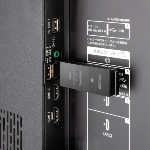 テレビ番組の録画用には、スティック型の外付けSSDがおすすめです。テレビのUSBポートに直接挿すだけで使えて便利。壁掛けテレビと組み合わせたい方にもぴったりです。