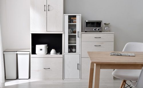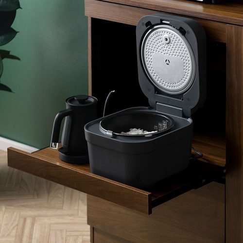 炊飯器や電気ポットのように、使用時に蒸気が出る家電を収納するなら、引き出しレール付きの食器棚がおすすめです。作業をするときにトレイを手前に引き出せる構造のモノは、蒸気を気にせず使えて便利です。
