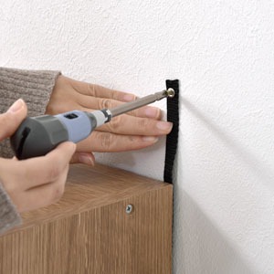 転倒防止用ベルトが付属しているのもポイント。食器棚本体と壁を連結することで、転倒のリスクを軽減できます。