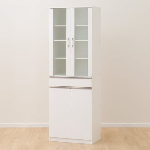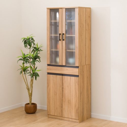 ガラス戸収納と扉収納を兼ね備えたコンパクトな食器棚。見せる収納と隠す収納のどちらも叶え、食器の種類に応じて使い分けることが可能です。幅60×奥行き29cmの省スペース設計で、一人暮らしの部屋にも対応できます。