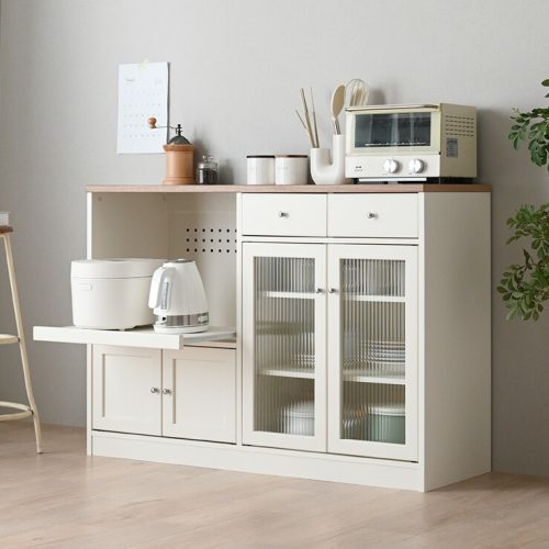 食器棚においては、省スペース設計ながら収納力が高いモデルを展開。棚板の高さ調整やキャスター付きなど、使いやすさにこだわっています。フルスライドレールを採用し、湯気の出る炊飯器も安心して使用できるモデルもラインナップしています。