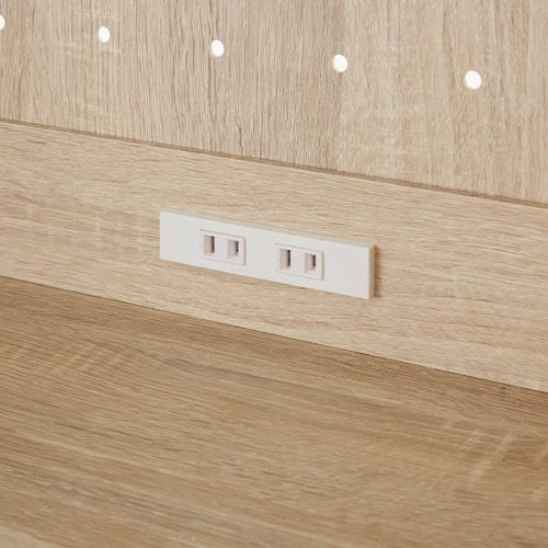 コンセント付きで家電使用がスムーズなハイタイプ食器棚です。2口コンセントが内蔵されており、電子レンジや炊飯器などの電源確保に便利。天板は防水仕様で水拭きできるため、日常的なお手入れも簡単です。