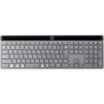 本体にソーラーパネルを備えているマルチペアリング対応のキーボード。200ルクス以上の明かりを当てれば充電が可能です。