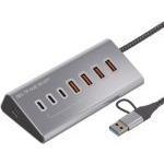 複数のUSB機器を同時接続できる高速7ポートハブ。USB 10Gbps対応により、データ転送をスムーズに行えます。Type-C 3ポートとUSB A 4ポートを搭載し、さまざまな機器に対応するのがポイントです。