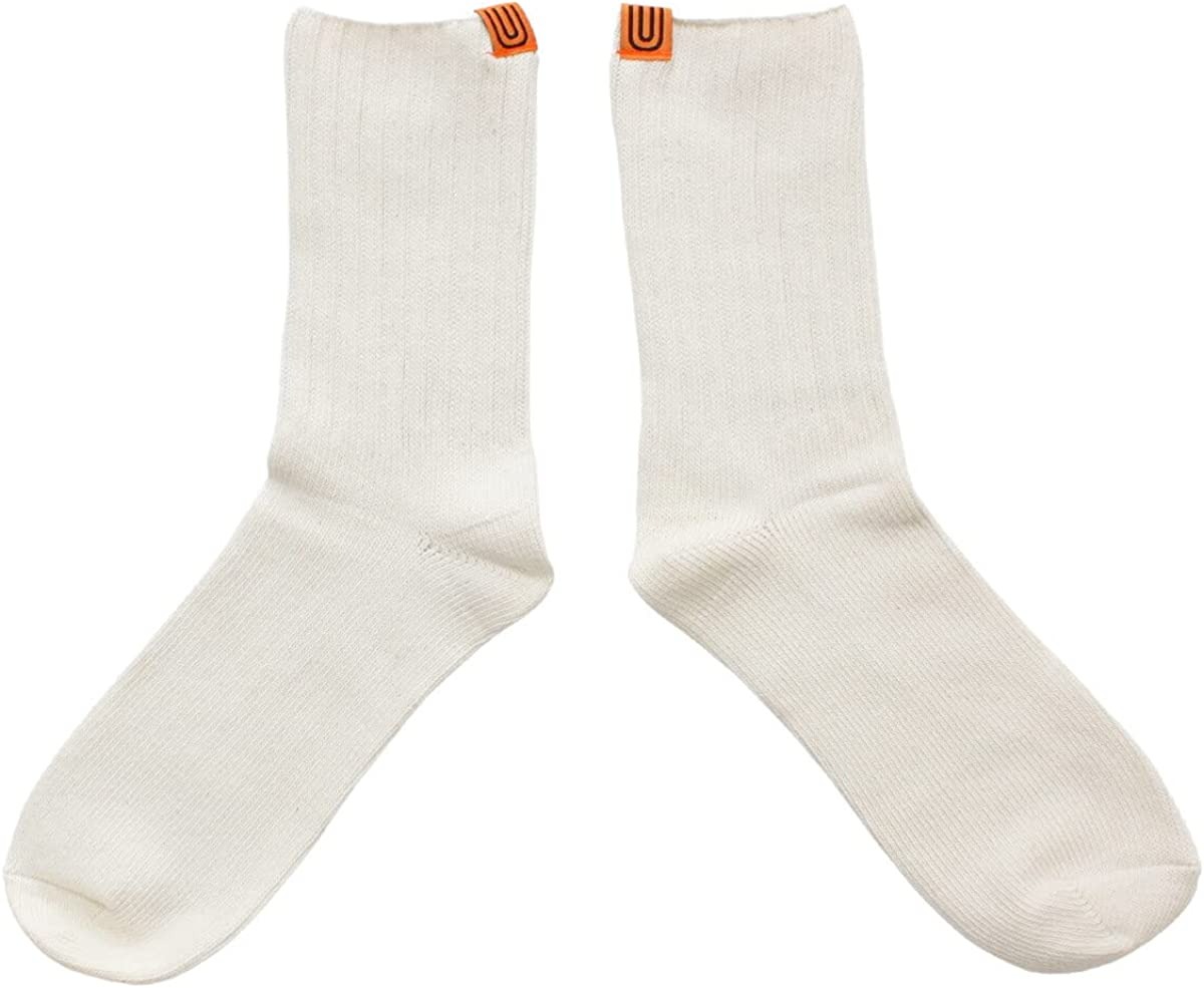 太めのリブが特徴の白ソックスです。ワンウォッシュ加工が施されており、味のある風合いが魅力。また、履き口の斜めうしろにあしらわれたオレンジのブランドタグがアクセントになっています。