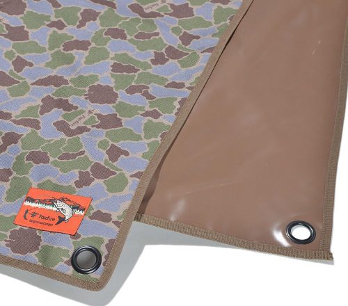 パラフィン加工を施した極厚の帆布グランドシート。16オンスの分厚い生地を使用しており、タフな地面環境でも優れた耐久性を発揮します。朝露で濡れた地面からの染み込みを大幅に軽減し、快適なキャンプ空間を実現。