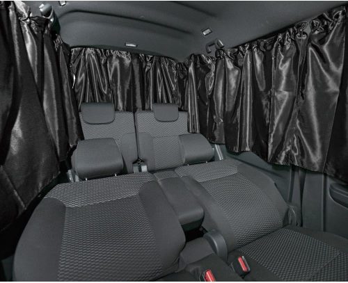 車中泊時のプライバシーを確実に守る専用設計フロントカーテン。NBOX専用の形状でぴったりフィットし、外からの視線をしっかり遮断します。厚手の生地構造で遮光性に優れ、車内を暗く保てるのが特徴です。