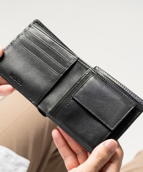 ムラ(MURA) やぎ革レザー 隠しポケット付 スリム 二つ折り財布