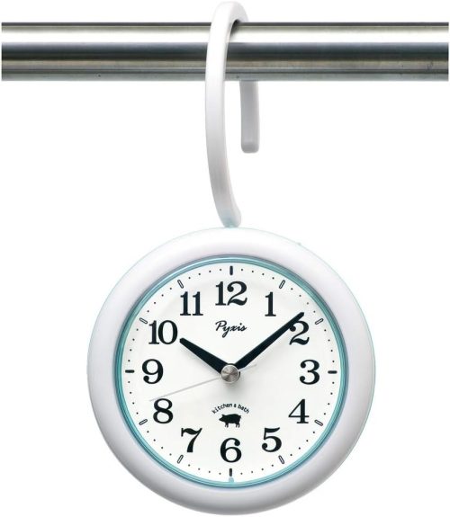 限られた場所にも省スペースに設置しやすいコンパクトサイズも魅力。大型フックが付いているため、掛け時計としても使用できます。水回りでも使いやすいアイテムを求める方におすすめです。