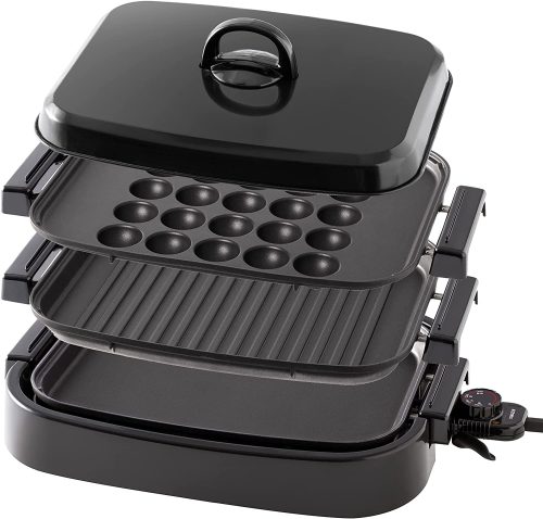 ホームパーティなどが好きな方への新築祝いにおすすめのホットプレートです。平面プレート・波型プレート・たこ焼きプレートが付属しているのが特徴。また、約80〜230℃までの温度調節機能を搭載しているので、好みや仕上がり具合に合わせて焼き加減をコントロールできます。