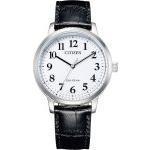 太陽光や室内のわずかな光を電気に変える光発電「エコ・ドライブ」を搭載した腕時計です。光を取り込むだけで時計を動かし続けるため、定期的な電池交換が不要。一度フル充電すれば、光のない場所でも長時間動作し続けるのが大きなメリット。ステンレスケースと牛革バンドで高級感を備え、毎日の装いに上品さをプラスします。