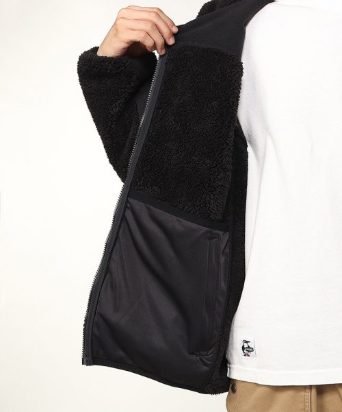 毛足の長い大粒タンブリングボアを使ったフリースジャケットです。裏地には起毛メッシュを用いることで、保温性と通気性を両立しています。また、手袋をしたままでも開閉しやすい、引き手付きのファスナーポケットを搭載しているのも特徴です。