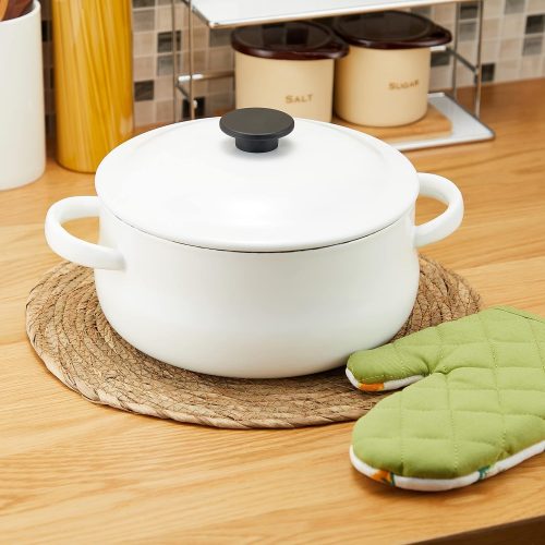 ガラスが原料の「エマイユ加工」が施されているのもポイント。汚れやニオイが付着しにくいため、カレーやキムチ鍋など香りの強い料理にも向いています。また、250℃までの高温に対応でき、ガスの直火・IHのほかに、オーブン調理も可能です。