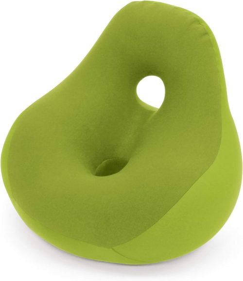 体のカーブに沿うフィットカーブ設計により、もたれる・座るなどさまざまな姿勢に対応します。また、中央の穴で圧力をかけない無圧設計もポイント。良好な体圧分散効果で快適な座り心地をサポートします。