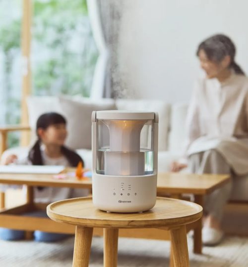 加湿器においては、超音波式と気化式、ハイブリッド式の3種類をラインナップ。デザイン性に優れたモデルが多く、インテリアの印象を崩さずに設置できます。タンク容量もさまざまな製品が揃っているので、設置する部屋に合わせて選びたい方におすすめです。