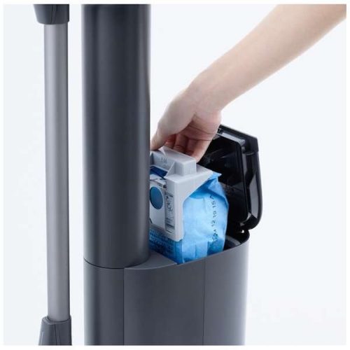 掃除後はスティックを戻すだけでゴミを自動収集。ゴミ捨ては「パックinカップ」構造で、紙パックに触れずにボタンを押すのみと簡単です。ダストカップはまるごと水洗いできるため、清潔さを保てます。