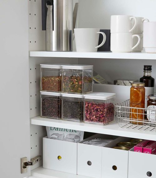 キッチンスペースを有効活用するには、収納のしやすさも大切です。スクエア型の容器は、引き出しや棚の角にぴったり収まり、無駄なスペースが生まれにくいのが魅力。限られたキッチンスペースを有効的に活用したい方におすすめです。