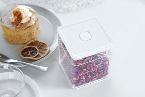 密閉力を重視する方におすすめの調味料入れです。上部に用意されたバルブをワンプッシュするだけで、容器をしっかり密閉できるのが特徴。調味料だけでなく、湿気の影響を受けやすい海苔や茶葉などの保管にも適しています。