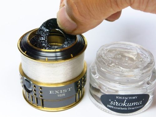 基本的な使い方としてはスプールからフェルト素材のドラグワッシャーを外し、両面にグリスを塗布するだけ。なお、オーバーホールをしたい場合はさらにカーボンワッシャーやアルミプレートなど、ドラグ部分に関連する他のパーツにもグリスを塗布するとより効果を発揮します。興味がある方はぜひ試してみてください。
