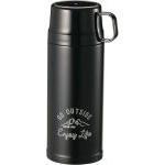 中栓はフルオープン構造で、飲み物を注ぎやすく洗浄も簡単。容量は600mlとちょうどよいサイズ感で、オフィスやアウトドアなどさまざまなシーンで活躍します。コップも付属しており、用途に応じて使い分けができるのがポイントです。