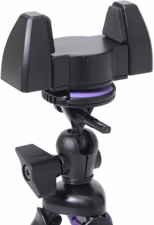 雲台が前後・左右に可動し、角度や位置を自由に調整可能。6.5インチまでのスマートフォンに対応したホルダーには、滑り止めが付いているので落下を防ぎます。コンパクトデジタルカメラも取り付けられる標準ネジを採用しており、幅広い用途に活用できます。