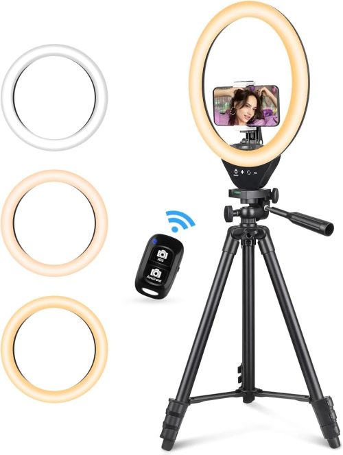 動画配信やオンライン会議、夜間の撮影などで自分の顔を明るく見せたい方には、ライト付きの三脚がおすすめです。顔に均一に光が当たることで表情が自然と明るくなり、好印象を与えられます。リングライト付きの製品は、影を減らしてきれいに映せるのが特徴です。