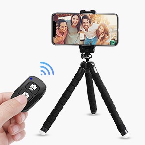 リモコン付きのスマホ用三脚は、離れた場所から手軽にシャッターを切りたい方におすすめです。Bluetoothでスマートフォンと接続し、ワイヤレスで撮影が可能。シャッターボタンを押すときの振動による手ブレを防げるのがポイントです。