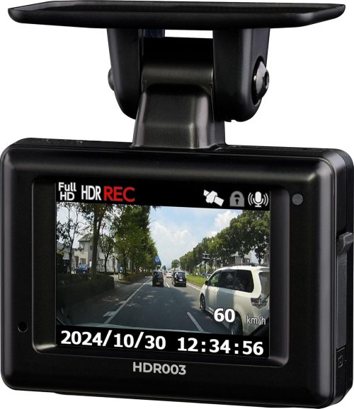 必要な機能だけをシンプルに搭載したドライブレコーダー。HDR機能により白とびなどの明暗差を補正し、逆光にも強く安定した映像を記録できます。水平115°の広角レンズでフルHD画質の録画が可能です。
