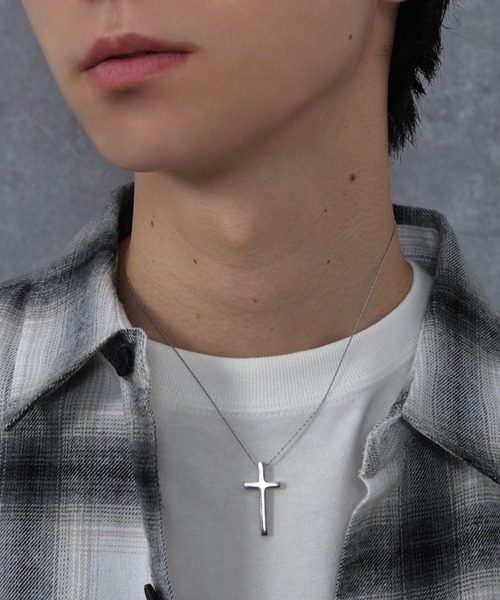 メンズライクな存在感を放つステンレス製のネックレス。クロスモチーフなど、シンプルながらも個性のあるデザインが3タイプ展開されています。シルバーアクセの定番として日常に映えるアイテムです。