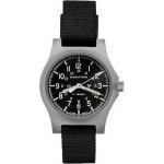 外部光源での充電が不要な自己発光式のフィールドウォッチです。トリチウムガスチューブを備えており、暗所でも視認性を確保。歩兵用に設計された実用性の高さが魅力です。