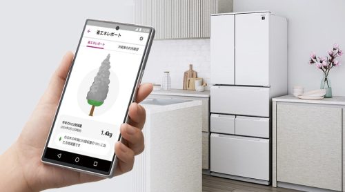 登録した食材の賞味期限が近づくと通知したり、在庫の食材から作れるレシピを提案したりする機能も。スマートフォンの位置情報と連携し、自宅から離れると自動で節電モードに切り替わるなど、省エネをサポートする機能も充実しています。