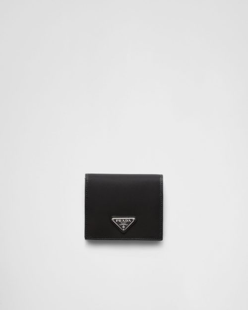 プラダらしい洗練されたルックスの二つ折り財布です。海洋プラスチックをリサイクルした再生ナイロンファブリック「Re-Nylon」を使用。フロントにはエナメルメタルのトライアングルロゴを配し、サフィアーノレザーのディテールとライニングを施しています。