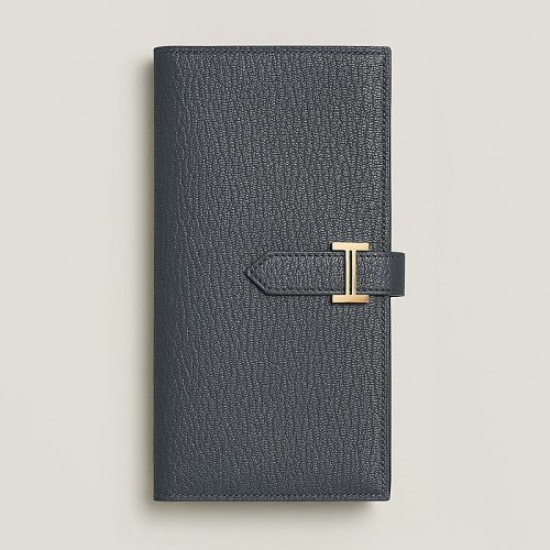 エルメスを代表する上品な長財布です。マチのある札入れが付いたタイプで、紙幣を約100枚収納できる大容量が魅力。さらに、小銭入れ1つ、カード入れ5つ、内ポケット3つを備えており、機能性に優れています。幅17.5×高さ9×厚さ2cmのサイズ感で、ジャケットの内ポケットにもすっきりと収まるスマート設計が特徴です。