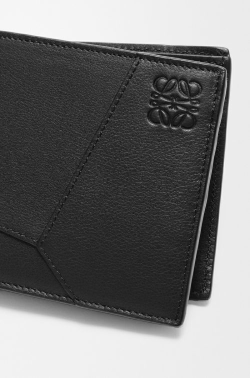 幾何学的なラインが特徴的な二つ折り財布です。ブランドの象徴的なバッグである「パズル」のデザインからインスピレーションを受けたアイテム。フロントにはロエベのアナグラムが控えめにエンボス加工され、洗練された個性を演出します。