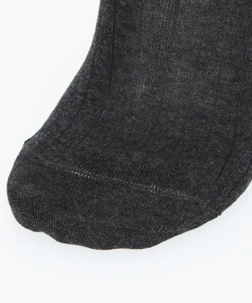 太リブ仕様によりフィット感が高く、ズレにくいのもうれしいポイント。サイドのワンポイント刺繍が、控えめに主張します。クルー丈でほどよい長さがあり、スーツスタイルにもマッチします。