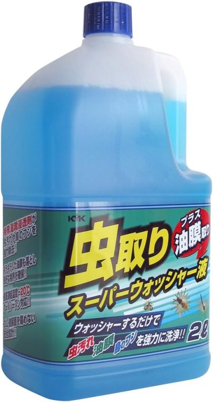 虫取り効果のあるウォッシャー液。湿潤浸透剤を配合しており、フロントガラスに付着した虫汚れや鳥の糞といった汚れをしっかり除去します。油膜取り効果があり、ギラついた汚れも落とせるのがメリットです。