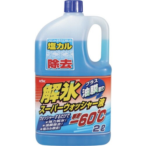 解氷効果のあるウォッシャー液。原液使用時の凍結温度は-60℃で、ガラスについた霜・氷・雪を素早く溶かします。また、希釈しても使用でき、原液1:水1で希釈した場合の凍結温度は-21℃です。