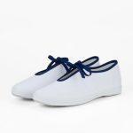 甲のリボンが目を引くレディース白スニーカー。大人かわいい雰囲気を好む方におすすめの1足です。白すぎないアイボリー系なので、足元にやさしげな印象を与えられます。