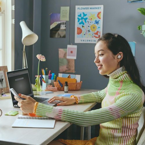 3台のデバイスとマルチペアリングできる、完全ワイヤレスイヤホン。PCやスマホなどとマルチポイント接続しておけば、素早くデバイスを切り替えられます。