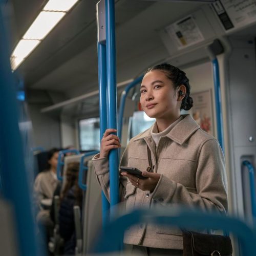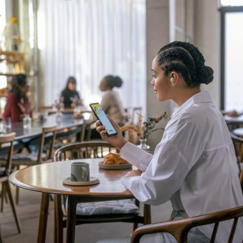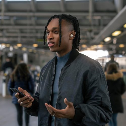ノイズキャンセリング機能があると、周囲の騒音を軽減できます。電車内・カフェといった騒がしい場所でも音楽や通話に集中したい方にぴったり。イヤホンに搭載されたマイクが周りの音を打ち消す信号を出すことで、静かな環境を作り出します。